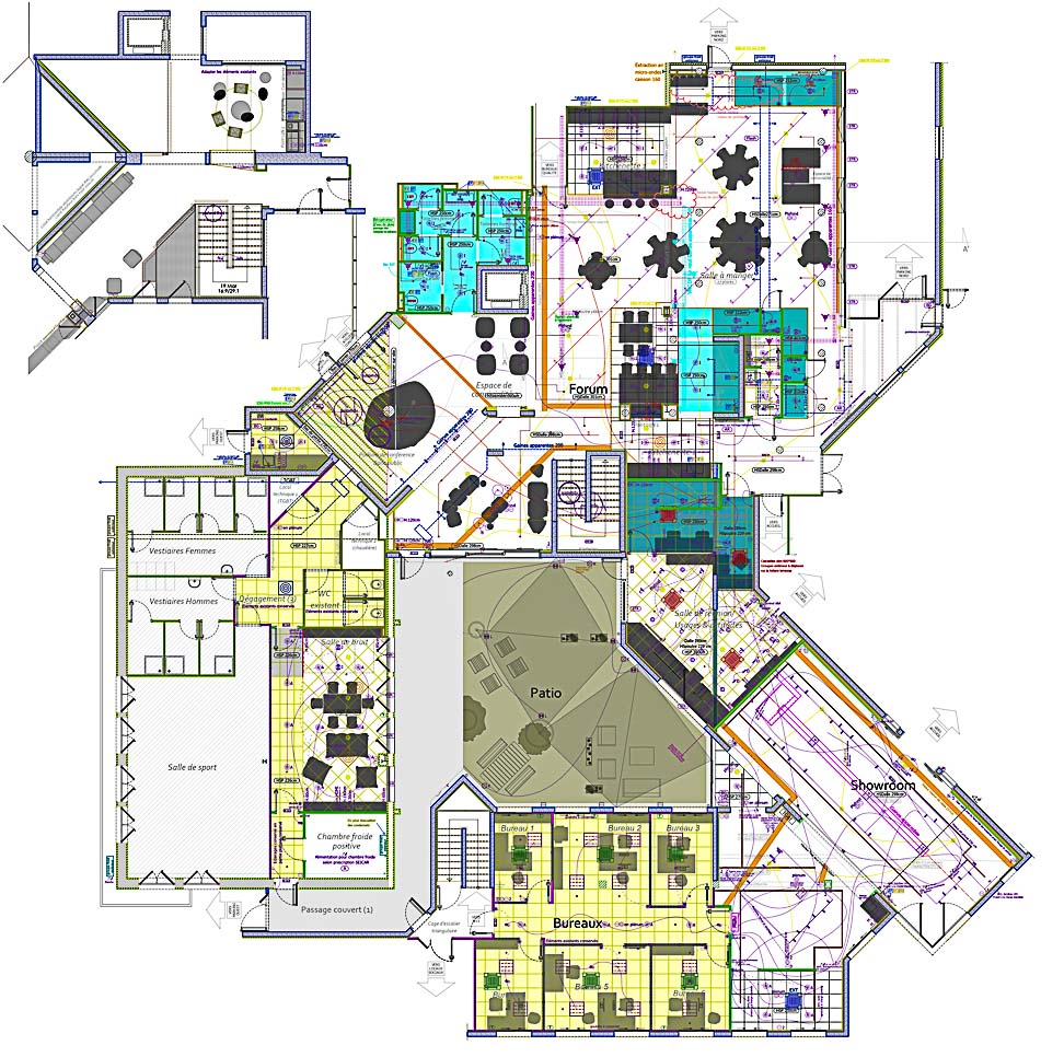Mise en place de différents scenari en fonction des besoins (déjeuner du midi/reception clients/intervention sur scène/cowork).